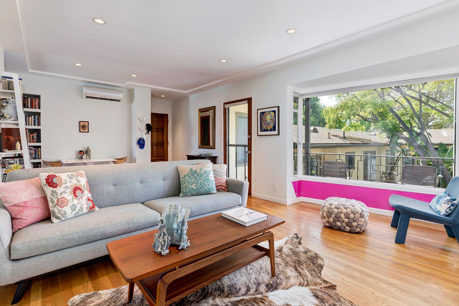 Pristine Vintage 1+1 Top floor condo in charming character building. Hardwood floors, balcony, lots of light and views of the hills. Large remodeled kitchen with stainless appliances, gorgeously renovated bathroom right out of DWELL magazine. Laundry inside. Ductless Mini-split AC units. Charming 21 unit complex has EQ insurance, lush courtyard w/ fountain, & controlled access. Amazing location seconds to everything you need: Trader Joe's Whole Foods, Crunch Gym, Starbucks, Sundance Theaters, & the very best of Weho & the Sunset Strip! 1 covered parking space. This unit is "Done" and priced to sell!